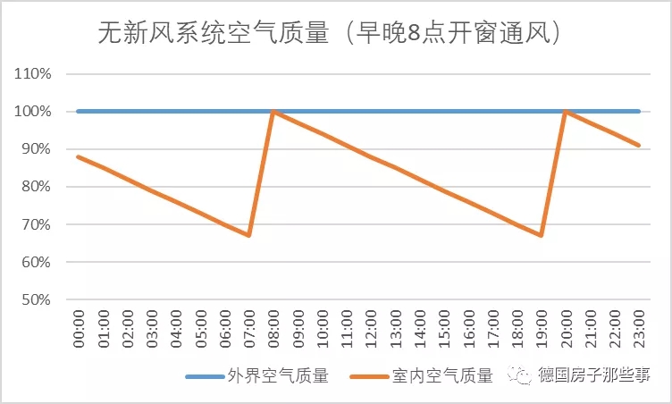 那是不是有人會問,沒有新風系統的房子,每天也要進行兩次通風呀?有通風,且沒有熱交換,熱量損失會更大不是么?