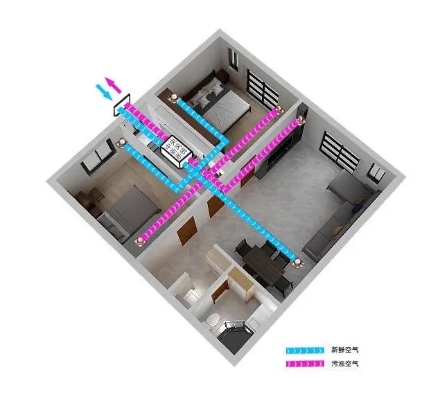 新風系統其主要功能是通風換氣,維持室內空氣清新。基礎的通風功能是在不開窗的條件下,讓家里保持空氣新鮮流通,將室內污濁的空氣加速送到室外。通風換氣不用開窗,能減少室外灰塵的進入,多天不用打掃衛生;通風換氣能有效解決室內二氧化碳超標的問題,源源不斷引入凈化過濾后的新鮮空氣,保證室內空氣的含氧量,空氣更清新,拒絕空調病;通風換氣能減少室內異味,二手煙等。