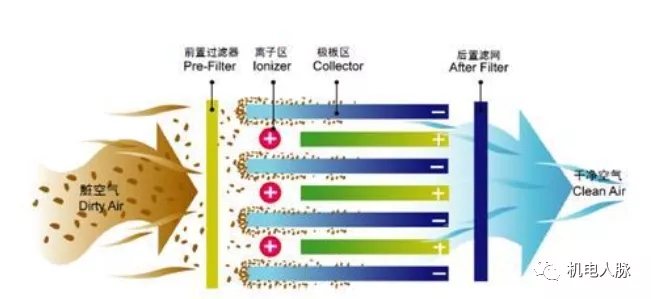 凈化原理:高壓強電場的作用,顆粒物吸附在負(fù)極板或者正極板,異種電荷相互吸引。