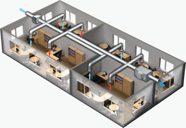 相比風量選擇,新風系統送風方式更加重要,分為頂送頂排布管方式(如本文圖一)和地送頂排布管方式。從圖上可以看出,地送頂排方式管子扁平,會有風量損失,所以選擇風量要相對高一些好。這種送風方式有很多優勢,換氣效果好,梁上不用打太多孔,冬天也能利用地暖節能。推薦大家選擇這種方式,不會讓你后悔。