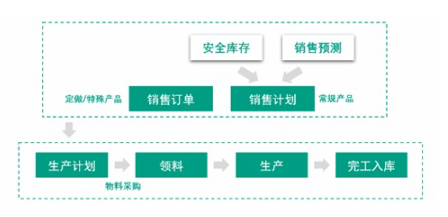 對于常規產品,根據銷售訂單、安全庫存量,并結合產品推廣策略下達排產計劃從而安排生產;對于定做產品和特殊產品,根據客戶下達的銷售訂單安排生產。