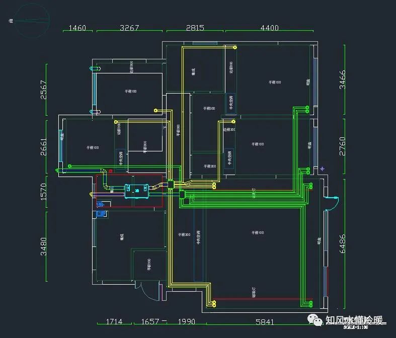 第一張圖是集中回風(fēng),第二張是點(diǎn)送點(diǎn)回,可以看到點(diǎn)送點(diǎn)回使用管路更多,打孔更多,風(fēng)口也更多,集中回風(fēng)12個(gè)口,點(diǎn)送點(diǎn)回17個(gè)口,成本增加1500-2000左右。