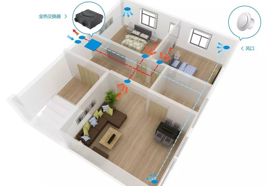 對(duì)新裝修的房子來說,新風(fēng)系統(tǒng)置換空氣的作用,就是把含有甲醛等有害物質(zhì)的空氣排出去,換進(jìn)來安全潔凈的新鮮空氣,以此來保證我們的呼吸健康。