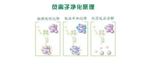 凈化原理:正負電荷中和,以及負離子的還原作用。