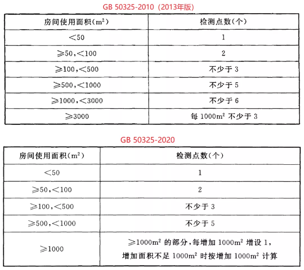 圖片室內污染物濃度檢測點數設置-2013版VS2020版