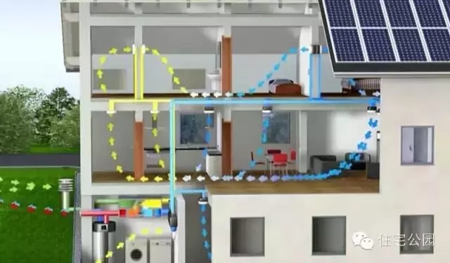 污濁空氣通過各臥室、起居室空間進入排風系統。