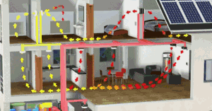 空氣置換、凈化:室外新鮮空氣與室內污濁的空氣經過高性能空氣質量交換器(熱轉換器),污濁空氣部分能量(排風系統中的部分能量有效回收后儲存在儲能裝置中)傳遞給進入的新鮮空氣,新鮮空氣通過預熱(預冷)、濕度交換后送入室內。