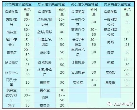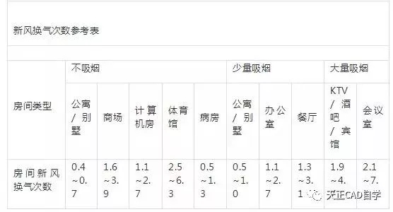 空調(diào)環(huán)境不同類型建筑新風(fēng)量標準(新風(fēng)量:m3/h.人)