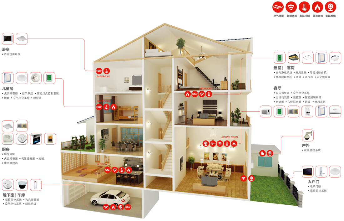 遠(yuǎn)程操控全部家電設(shè)備,實(shí)時(shí)查看家電當(dāng)前開關(guān)狀態(tài),并可設(shè)置家電之間的聯(lián)動(dòng)。家庭背景音樂是在公共背景音樂的基本原理基礎(chǔ)上結(jié)合家庭生活的特點(diǎn)發(fā)展而來的新型背景音樂系統(tǒng)。簡單地說,就是在家庭任何一間房子里,比如花園、客廳、臥室、酒吧、廚房或衛(wèi)生間,可以將MP3、FM、DVD、電腦等多種音源進(jìn)行系統(tǒng)組合讓每個(gè)房間都能聽到美妙的背景音樂,音樂系統(tǒng)即可以美化空間,又起到很好的裝飾作用。